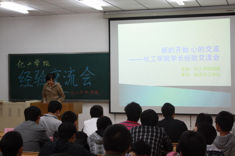 为使2011级新生尽快适应大学学习生活环境,化工学院团委、励志化工讲坛主办的“新的开始,心的交流------化工学院2011级新老生交流会”于2011年9月18日在二区主楼B507举行。参加会议的有化工学院团委书记刘铭辉老师和来自研一、大二、大三及大四的14名优秀学生代表。 刘铭辉老师首先代表全院学生对2011级新生表示欢迎并就学习科研、学生工作、思想提升和快乐生活四个方面做了详细的介绍。来自各年级的九位优秀学生代表结合自身经历为大一新生带来一场场具体生动的演讲,从学习方法、社团活动、社会实践和日常生活等方面给大家提供意见和建议,用榜样的力量指引前进的方向。随后进入自由交流环节,各位学长走进同学中间,与同学们亲切交谈,为同学们解答各方面的困惑。整个会议在热烈的气氛中圆满结束。 此次活动气氛轻松热烈,新生同学们在看到听到优秀学长学姐的成长经历后纷纷表示受益匪浅,并逐渐明晰了未来的努力方向,为学院新生班级树立良好班风和学风奠定了基础。