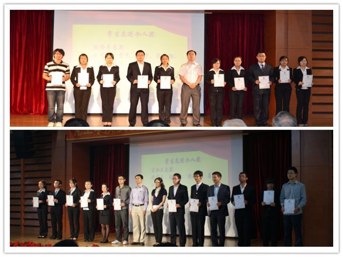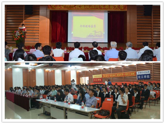 6月17日上午10:00,化工学院庆祝建院四周年表彰大会在一区新活动中心101隆重举行。省科技经济顾问委员会专家组组长、化工学院顾问教授陈世岩,省石化行业协会教授级高级工程师、化工学院顾问教授刘国良,化工学院院长黄玉东、党委书记姜兆华、副院长孟令辉、党委副书记岳会敏、各系领导及全院师生员工参加了本次表彰大会。 表彰大会在激昂的《哈工大校歌》中拉开帷幕。学院党委书记姜兆华教授宣读了《化工学院关于表彰2011-2012年度先进集体和先进个人的决定》。学院顾问教授陈世岩、刘国良,院长黄玉东、党委书记姜兆华等院、系领导分别为学生先进集体、先进个人和教师先进个人颁奖。表彰大会上, 1014212班等5个优秀班级、A12-508-2等14个特色寝室、学院研究生会和青年志愿者协会等两个社团、李朦等40名学生先进个人受到表彰,刘立洵等3名教职工被授予“先进工作者”荣誉称号,熊岳平、徐慧芳被授予“优秀班主任”荣誉称号,邵路、Simon Halstead等6名教师被授予“优秀教师”荣誉称号。颁奖仪式后,“领航班级奖”获得集体1014212班、首届院“十佳大学生”获得者代表牟辰中、“优秀教师奖”获得者代表杜春雨先后作了典型发言。 院长黄玉东教授在讲话中向受表彰的先进集体和个人表示热烈的祝贺,回顾总结了过去一年学院在人才培养、科学研究、国际交流与合作等方面取得的成绩。他指出,在喜迎党的十八大召开、庆祝学院成立四周年之际,学院全体师生员工要以受表彰的先进集体和先进个人为榜样,进一步贯彻落实学校第十一次党代会精神,坚持弘扬“规格严格、功夫到家”的哈工大校训和哈工大精神,凝心聚力、创先争优,在建设世界一流的化工学院的进程中再创佳绩。