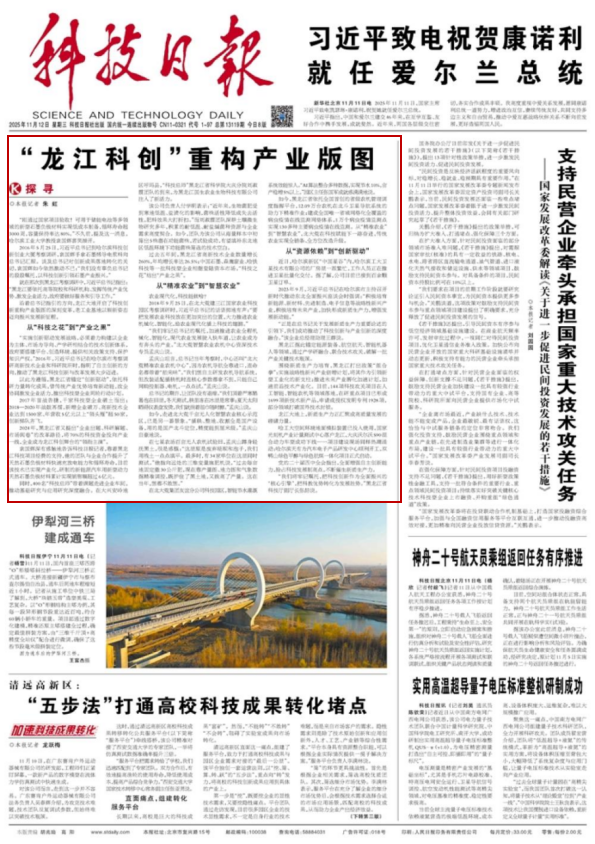 11月12日,《科技日报》在头版头条位置刊发专题报道,聚焦williamhill官网以科技创新驱动黑龙江产业转型升级的实践成效,并重点报道了我院袁国辉教授团队通过产学研协同创新实现技术成果转化的典型案例。