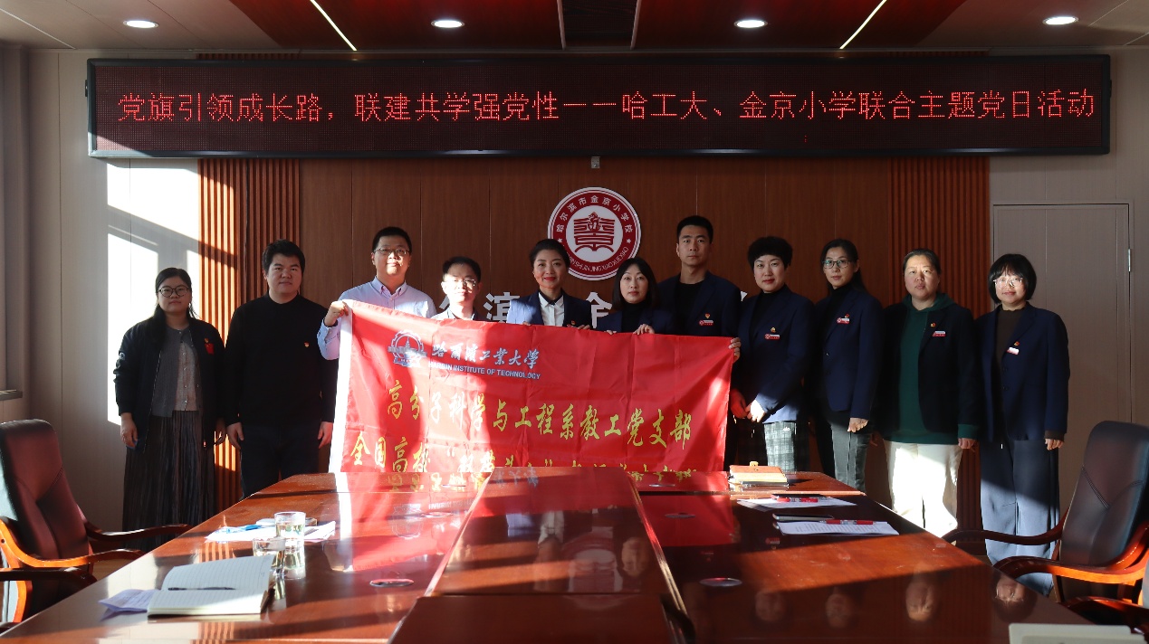 为深入推动“党建引领育人”工作,11月13日,高分子科学与工程系教工党支部与哈尔滨市金京小学校党支部联合开展了“党旗引领成长路,联建共学强党性”主题党日活动。此次活动是落实“双带头人”教师党支部“强国行”专项行动、推动党建赋能育人的具体实践,旨在通过高校与基础教育的联动,将党建活力转化为育人实效。金京小学校党委书记张春丽、我院高分子科学与工程系教师党支部书记黎俊、以及双方党支部委员及党员代表参加了本次活动,共同交流、推动教育事业发展。